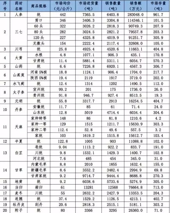數據來源:中藥材天地網。