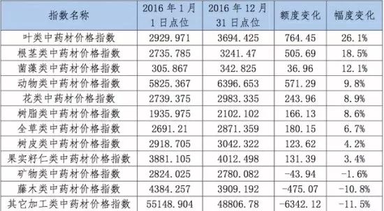 附表4 2016年中藥材各類別價格指數變化