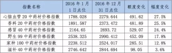 2016年,反映全國中藥材整體價格情況的中藥材天地網“中藥材綜合200價格指數”(我國200種主要大宗中藥材市場價格的綜合加權)整體上行,從2100點左右上漲至2600點附近,與2015年走勢相比,價格明顯回暖。