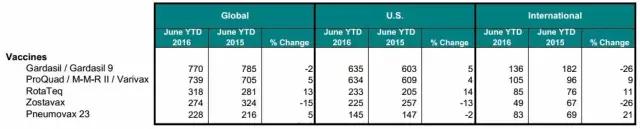 根據(jù)葛蘭素史克與默沙東去年發(fā)布的2016Q2季報(bào)顯示,2016上半年GSK希瑞適銷售額僅為4460萬美元(3400萬英鎊),下跌26%,其中美國市場只有130萬美元(100萬英鎊),歐洲市場1970萬美元(1500萬英鎊),其他國際市場2360萬美元(1800萬英鎊)。而默沙東的Gardasil/Gardasil 9 2016年上半年銷售收入7.7億美元,兩者相差超過17倍。