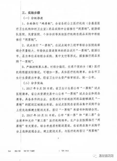 (2)執行時間,關于醫用耗材采購工作將藥品采購“兩票制”試行情況,擇期參照執行。