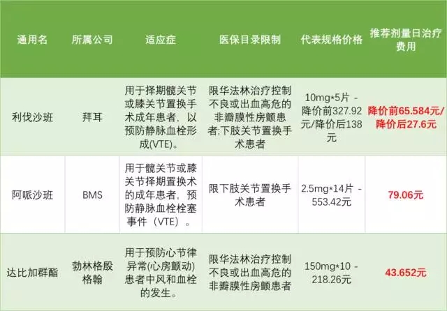 2017年初,國家醫保目錄終于調整完畢,利伐沙班的用藥限制在原來“限下肢關節置換手術患者”的基礎上,增加了“限華法林治療控制不良或出血高危的非瓣膜性房顫患者”,意味著利伐沙班將擁有更加廣闊的市場機會。但是與此同時,達比加群酯和阿哌沙班也在眾望所歸之下被納入到新版目錄中,利伐沙班的“醫保保護期”就此畫上了句號。