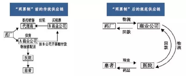 根據(jù)《兩票制實施意見》,“兩票制”是指藥品生產(chǎn)企業(yè)到流通企業(yè)開一次發(fā)票,流通企業(yè)到醫(yī)療機(jī)構(gòu)開一次發(fā)票。[1]國家有關(guān)部門推出“兩票制”的一個主要目的是希望通過“兩票制壓縮目前藥品流通環(huán)節(jié)普遍存在的多級經(jīng)銷體系,避免因流通環(huán)節(jié)層層加價而導(dǎo)致藥價虛高。