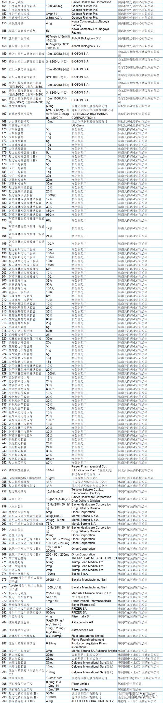 附表包含如下兩表內容:1.進口藥品代理品種和企業公示名單(第003號); 2.進口藥品代理品種和企業公示名單(第001號和第002號修正版)