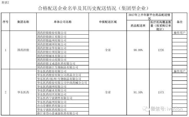 一、公布的合格配送企業名單中藥品配送率和醫療機構覆蓋數量,僅供投標人在建立配送關系時參考;集團型配送企業名單中標注的“操作用戶”為集團自行指定的具有操作權限的代表企業。