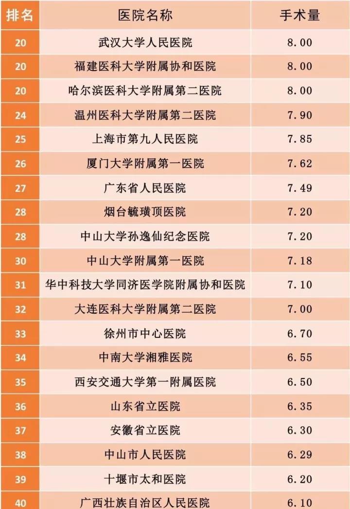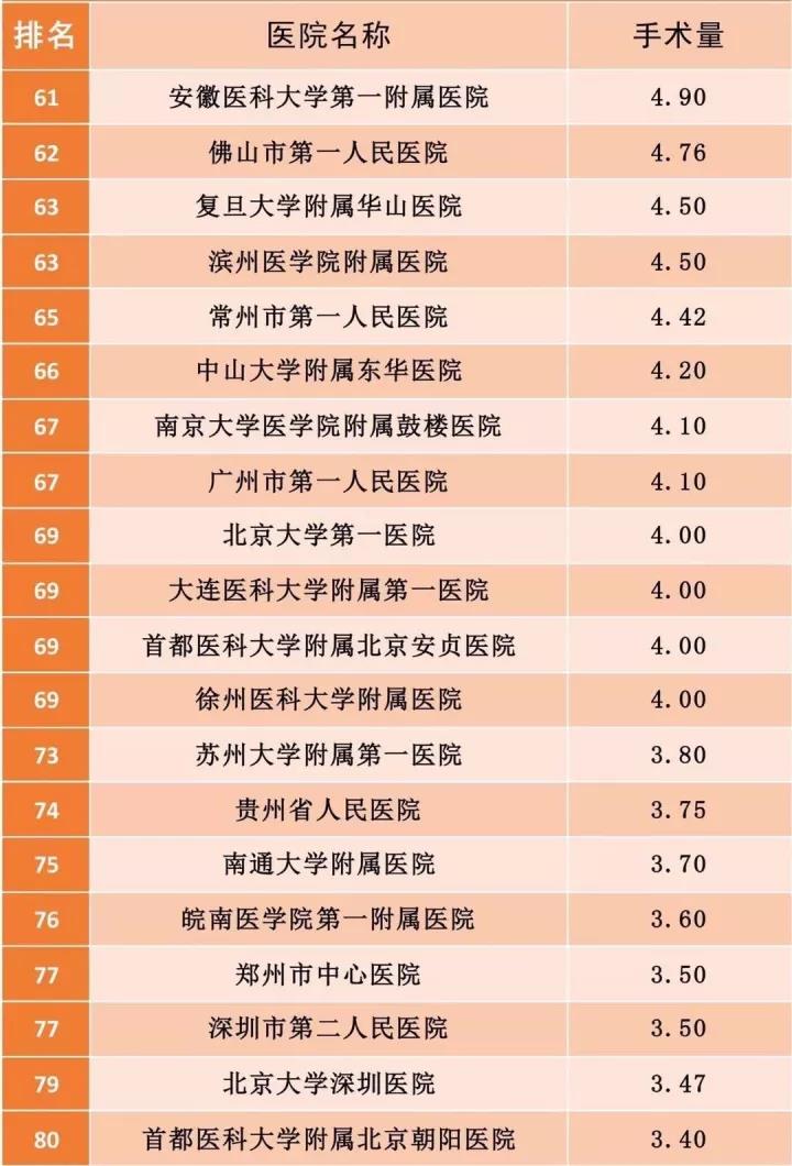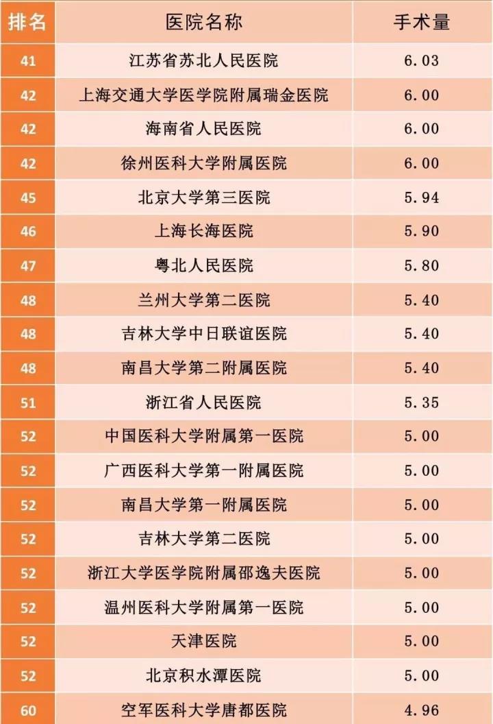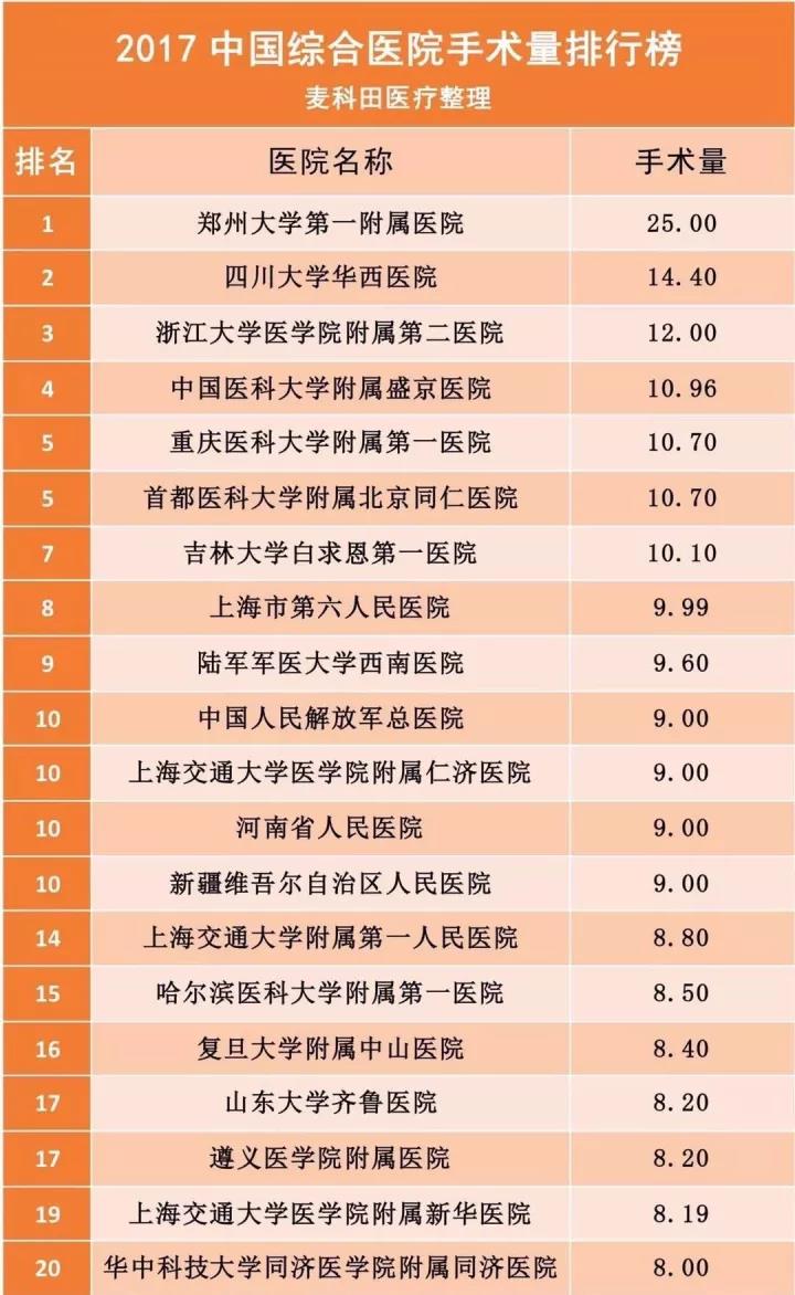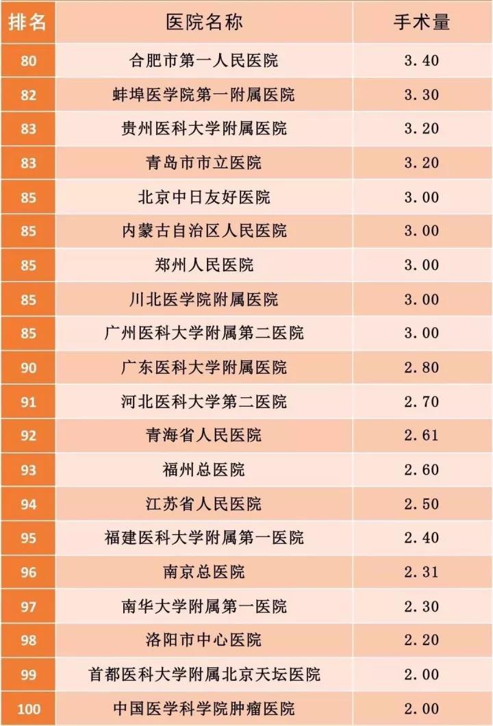 2017中國綜合醫(yī)院手術(shù)量TOP100排行榜出爐!