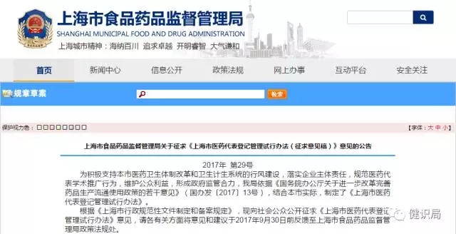 今年8月,上海市食藥監局發布了全國首個醫藥代表備案制的落地政策——《上海市醫藥代表登記管理試行辦法(征求意見稿)》,對醫藥代表備案的登記主體,明確為“藥品生產企業”。