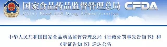 公告稱,因其他方式無法送達,食藥監總局依法向該公司以公告的形式送達《行政處罰事先告知書》(國食藥監械罰告〔2017〕1號)和《聽證告知書》(國食藥監械聽告〔2017〕1號)。限該公司在本公告發出之日起60日內,到總局領取前述告知書(聯系電話:86-10-88331302/88331368),逾期不領取即視為送達。