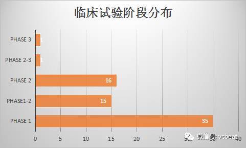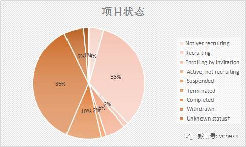這些項(xiàng)目中,幾乎所有的研究都處于臨床1期和2期,并且大部分都處于招募或者已經(jīng)完成的狀態(tài)。目前已經(jīng)完成的項(xiàng)目共有25個(gè),但公布結(jié)果的只有10個(gè)。