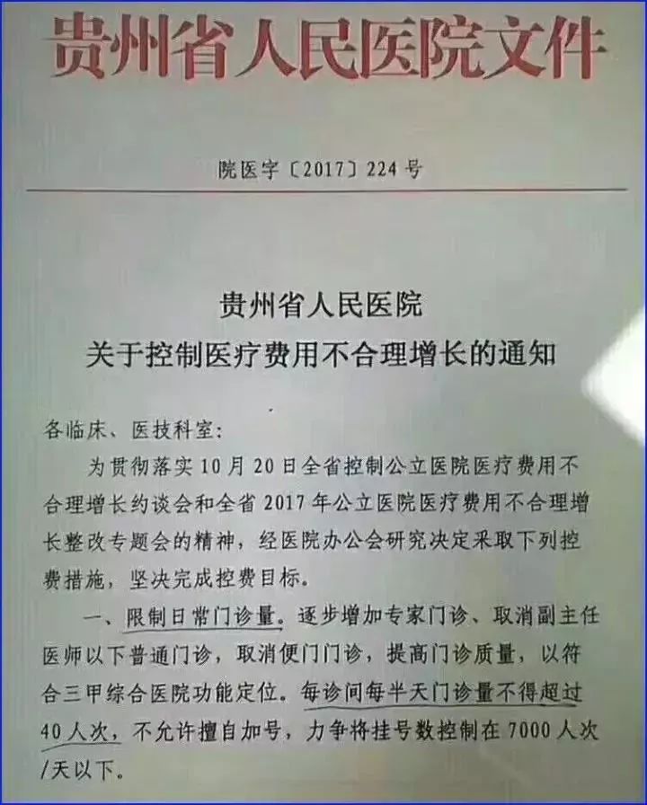 近日,根據(jù)網(wǎng)絡(luò)消息,貴州省人民醫(yī)院發(fā)布通知:限制日常門(mén)診量,逐步增加專(zhuān)家門(mén)診、取消副主任醫(yī)師以下普通門(mén)診。