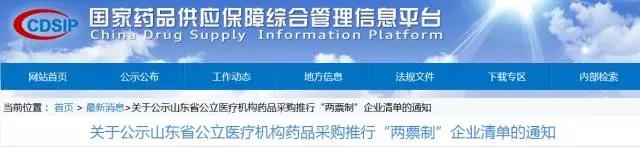 11月8日,山東省公共資源交易中心發布《關于公示山東省公立醫療機構藥品采購推行“兩票制”企業清單的通知》。