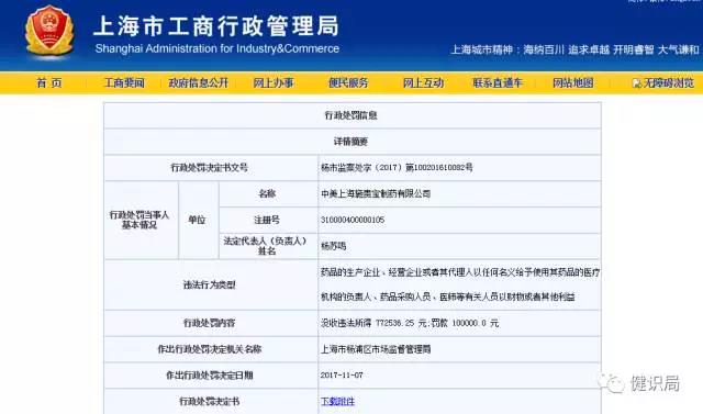 贊助醫生去倫敦開會買了往返商務艙,施貴寶被重罰87萬,還被上海工商局做了違法公示!
