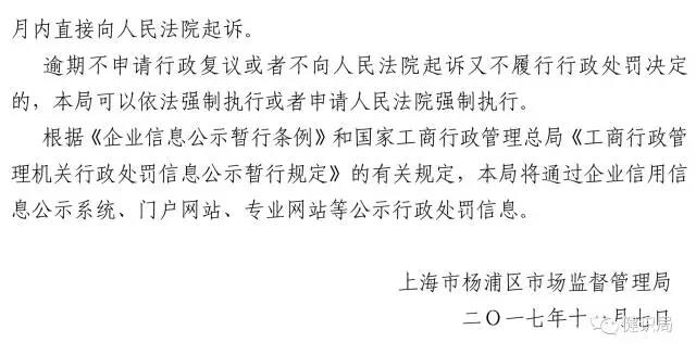 其中,逾期繳納罰款的,上海市楊浦區市場監督管理局可依據《中華人民共和國行政處罰法》第五十一條第(一)項的規定,每日按罰款數額的百分之三加處罰款。