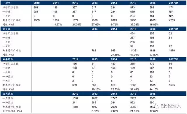 國大藥房是全國銷售規(guī)模排名第一的醫(yī)藥零售企業(yè),且連續(xù)五年蟬聯(lián)冠軍寶座。根據(jù)財(cái)報(bào)信息,國大藥房門店數(shù)達(dá)3693家,零售連鎖網(wǎng)絡(luò)遍布19個(gè)省、自治區(qū)及直轄市,覆蓋近70個(gè)大中城市。2017年上半年,國大藥房實(shí)現(xiàn)營業(yè)收入48.88億,同比增長(zhǎng)12.00%,凈利潤同比增長(zhǎng)30.08%至0.99億元。自2016年9月正式被國藥一致收購后,國大藥房成為國藥集團(tuán)的戰(zhàn)略性零售平臺(tái),國藥一致將注于醫(yī)藥分銷及零售業(yè)務(wù),不再控股醫(yī)藥工業(yè)相關(guān)資產(chǎn)。