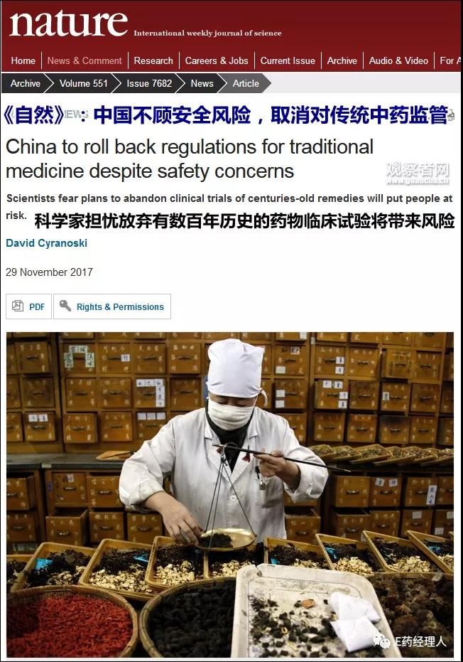 該文針對中國國家食品藥品監(jiān)督管理總局(下稱“國家食藥監(jiān)局”)10月公布的《中藥經(jīng)典名方復(fù)方制劑簡化注冊審批管理規(guī)定(征求意見稿)》中的相關(guān)條文進(jìn)行批評,觀察者網(wǎng)摘譯該文如下,各位讀者可自行斟酌參考: