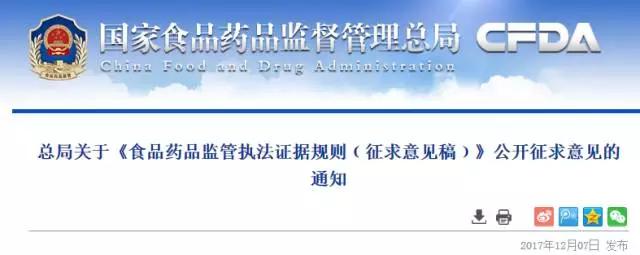 12月7日,國家食品藥品監(jiān)督管理總局發(fā)布關(guān)于《食品藥品監(jiān)管執(zhí)法證據(jù)規(guī)則﹙征求意見稿﹚》(以下簡稱《證據(jù)規(guī)則》)公開征求意見的通知。