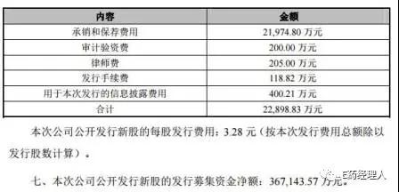 根據(jù)步長制藥的上市公告書,公司募資資金凈額為36.71億元,給中信證券支付的承銷及保薦費(fèi)用為2.20億元,占2.29億元的總發(fā)行費(fèi)用比例超過95%。