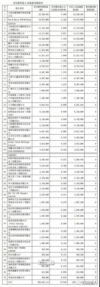 股價(jià)迅速下跌或與步長制藥的巨額限售股解禁有密切關(guān)聯(lián)。11月20日是步長制藥上市滿一年后的首個(gè)交易日,上市時(shí)的2.58億股限售股解禁流通,涉及43名股東,其中絕大多數(shù)為創(chuàng)投機(jī)構(gòu)。