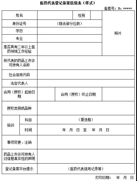 《辦法》規定,備案信息包括:醫藥代表的姓名、身份證號、照片;學歷、專業、醫藥領域從業經驗,以及培訓情況和推廣的產品等等。(詳見文末“醫藥代表登記備案信息表”)
