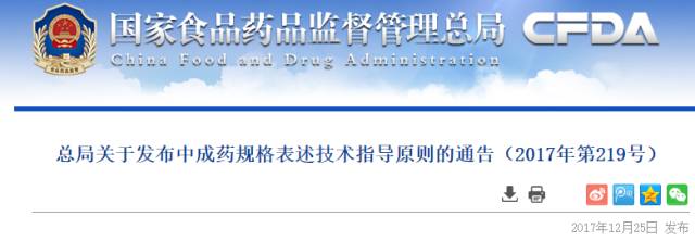 12月25日,CFDA發布《中成藥規格表述技術指導原則的通告》,該通告顯示:近90%的中藥文號在說明書【規格】項下并沒有標示單劑量藥品的含藥量,而是以重量、裝量等來標示規格,不符合藥品規格應該具備的內容。