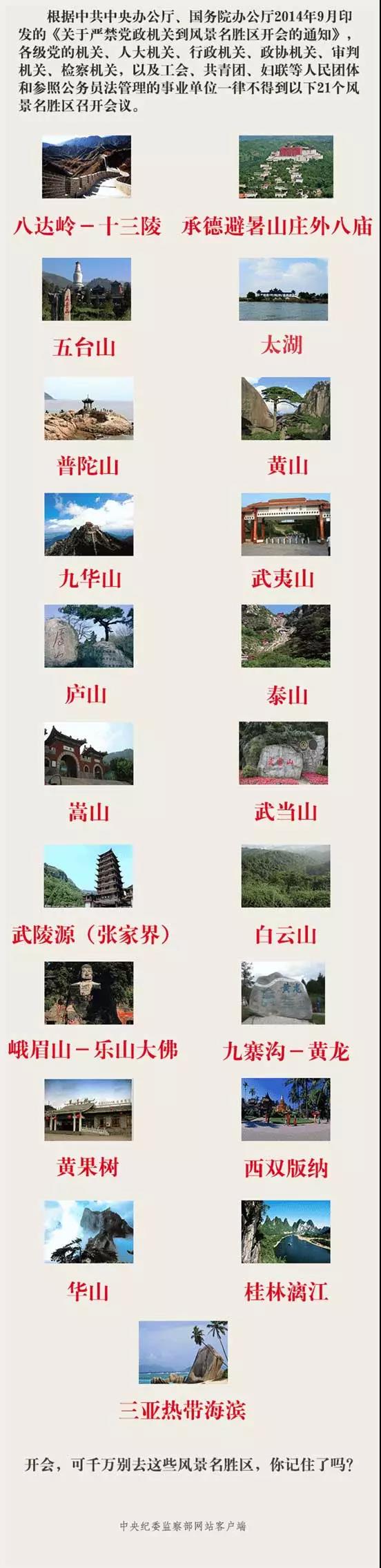 中紀委禁止開會的21個景區: