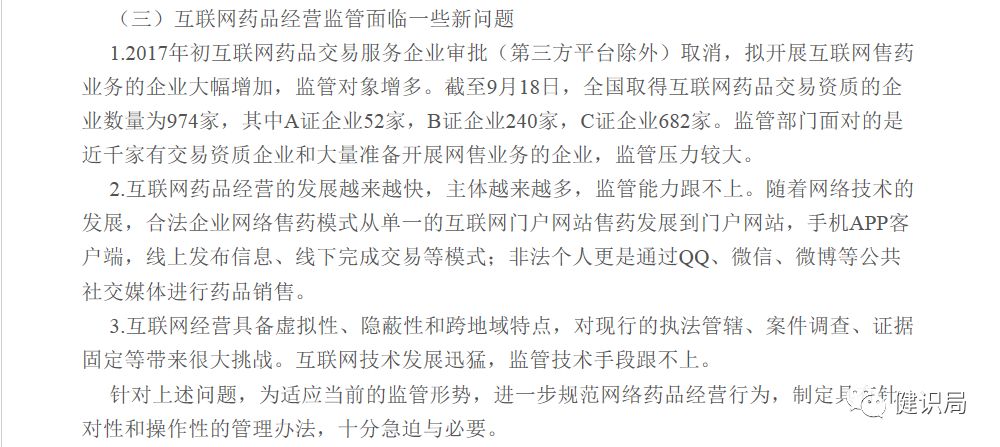 2017年,國家食藥監已就《網絡藥品銷售監督管理辦法》草案多次在不同層面征求意見。與去年11月14日首輪公示的征求意見稿相比,此番意見稿修訂不多,但措辭更為嚴謹,特別是對“網售處方藥”的態度明確