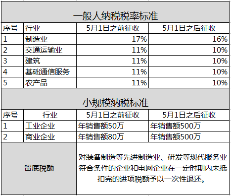 從2018年5月1日起,實施以下深化增值稅改革征收標準如下: