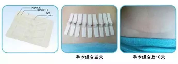其主要運用在手術切口和裂口,只要根據實際的傷口大小組合多大的拉鏈,然后粘貼在傷口的周圍,然后通過器材獨特的結構為切口提供了輕微的壓縮,就能使傷口愈合。