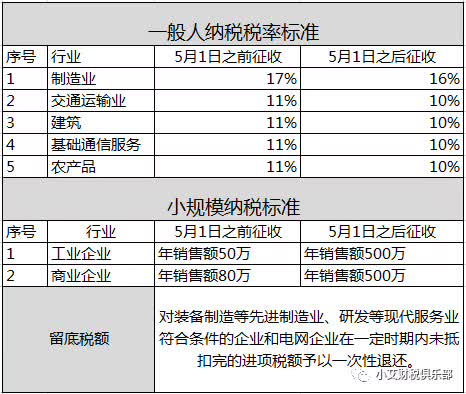 從2018年5月1日起,實施以下深化增值稅改革征收標準整理如下: