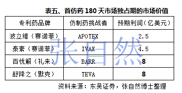 由于藥物研發企業都做了充分準備,所以看似很短的180天市場獨占期,實際上也可為藥企贏得巨額回報,如百憂解和舒降之在180天的市場獨占期內就分別為禮來和默克賺取了8億美元的利潤。