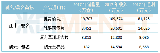 表2:公司“江中”及“初元”2個馳名商標2017年的銷售情況