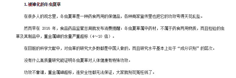 2018年02月27日,原國家食品藥品監管總局發布“這4種保健品不保健,千萬別花冤枉錢了!” 其中,第一個就直指冬蟲夏草。
