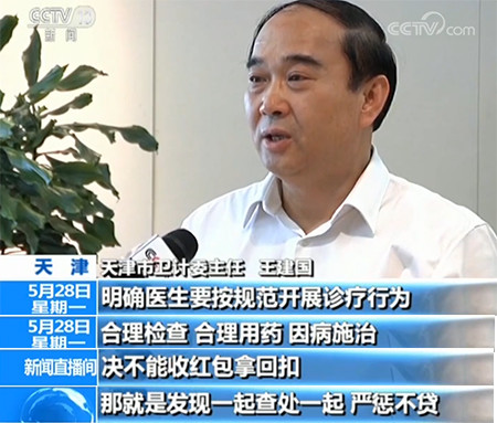 天津市衛計委主任王建國表示,此輪整治明確醫生要規范開展診療行為,要合理檢查、合理用藥、因病施治,決不能收紅包拿回扣,出現這種現象,出現這種問題,我們的態度是非常堅決的,那就是發現一起,查處一起,嚴懲不貸。