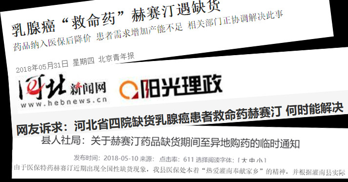 赫賽汀全國范圍內的醫院缺貨,已經有一段時間了。