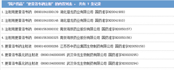 從國家藥監局數據查詢可知,目前我國獲得注射用更昔洛韋鈉批文的共有2個廠家,且均為本土企業,分別是湖北潛龍藥業的“荷普欣”、南京海辰藥業的“林可宏”;另有水針劑型---江蘇蘇中的“輝騰”,以及華龍生物的“迪都”(據中財網報道,更昔洛韋納注射劑在國內市場規模為8 億元左右)。