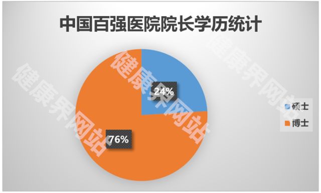 醫療行業是高知聚集地,想把醫術登峰造極,免不了5+3年的潛心學習。醫院院長的學歷普遍較高。健康界查到了百強醫院院長中79位的學歷,其中60位擁有博士學位,19位擁有碩士學位,沒有本科及以下學歷。