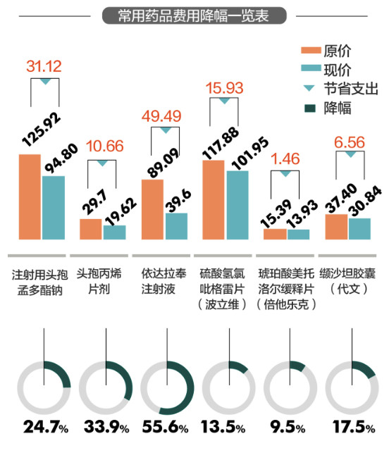 據悉,在降價幅度方面,兩個生產廠家以上的競爭性強的品種,平均降幅為47.45%;抗感染類藥物的平均降幅為36.4%。