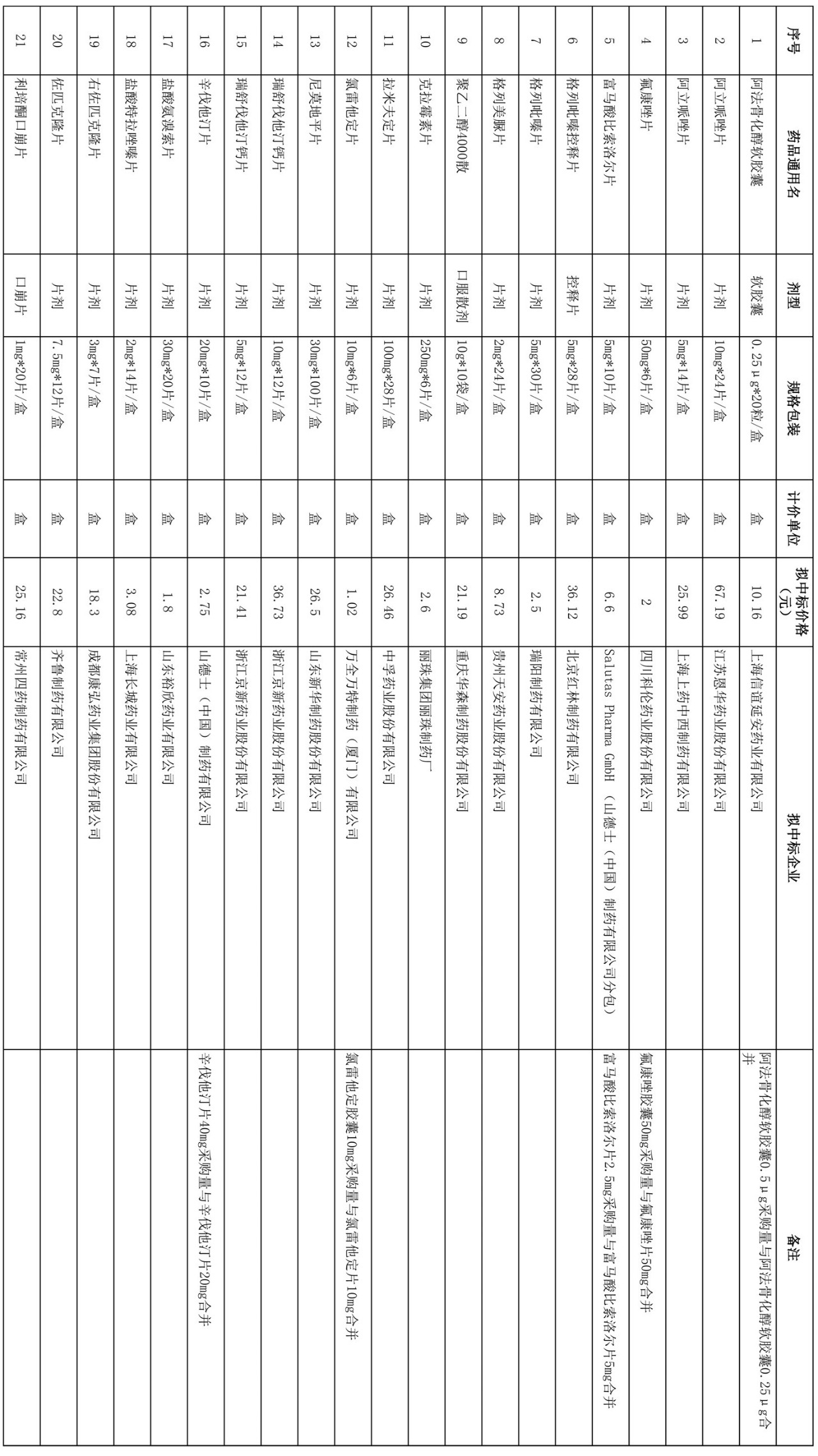 上海市醫療機構第三批集中帶量招標采購擬中標結果(橫置手機瀏覽)