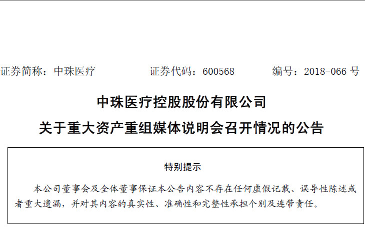 6月7日,中珠醫(yī)療發(fā)布關(guān)于重大資產(chǎn)重組媒體說明會(huì)召開情況的公告。