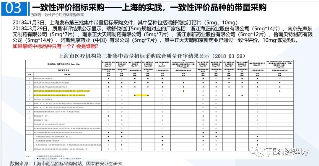 也就是說(shuō)在未來(lái)的1-2個(gè)季度,能夠獲得一致性評(píng)價(jià)標(biāo)識(shí)的瑞舒伐他汀企業(yè)數(shù)量有可能會(huì)達(dá)到8-10家