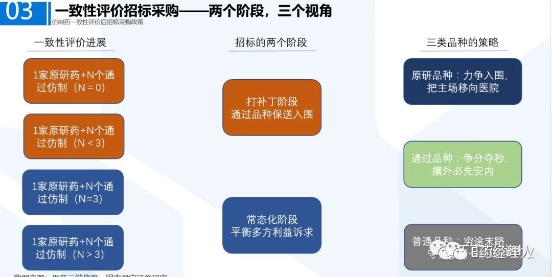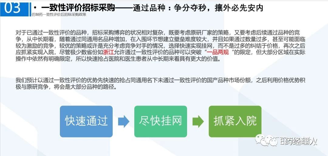 1)通過(guò)一致性評(píng)價(jià)不是護(hù)身符,而是通行證,通過(guò)后還需要營(yíng)銷(xiāo)等多個(gè)維度的配合,才能在產(chǎn)業(yè)大變遷中成為最后贏家。