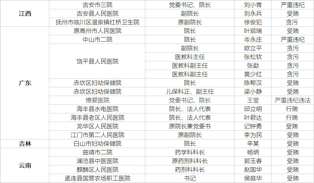 2018上半年醫(yī)療衛(wèi)生官員落馬大致清單