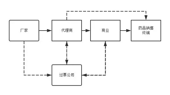 除了以上三大環節外,過票公司則是醫藥生態圈處于隱秘狀態下但不可或缺的一環,替廠家及代理商完成了發票高開及現金回籠的重要職能。如下圖所示