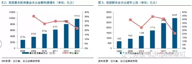 近年來,我國各地醫?;鸺娂娦娉跃o,5年內醫?;鹬С鲈鲩L近4倍,新農合人均籌資及支出也逐年增長。我們認為,其內在原因主要有三點,即我國全民醫保的制度體系、人口老齡化日趨嚴重、醫院過度治療。
