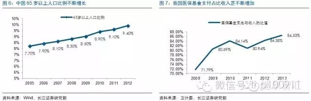 第二、我國人口老齡化加速,醫?;鹗罩胶鈮毫θ找嫱癸@。我國自2001年開始進入老齡化社會,即65歲以上人口比例超過7%,且老齡化速度快于世界平均水平。據聯合國預測,到2020年中國老齡人口將達1.67億人,約占全世界老齡人口6.98億人的24%。而由于老齡人口一方面病癥高發增加醫療剛需,另一方面不再繳納五險一金,意味著我國醫?;饘⑷氩环蟪?,未來壓力倍增。