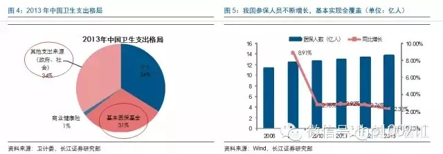第一、全民醫保的制度體系,決定了醫保基金承擔了主要支付重任。我國從1998年開始城鎮職工基本醫保制度,目前已形成以城鎮職工醫保、城鎮居民醫保、新農合、城鄉居民大病保險為主的基本醫保體系,2013年參保人數已達13.72億,基本實現全民覆蓋,決定了政府醫?;鹗俏覈t療支付的主體。