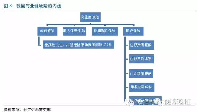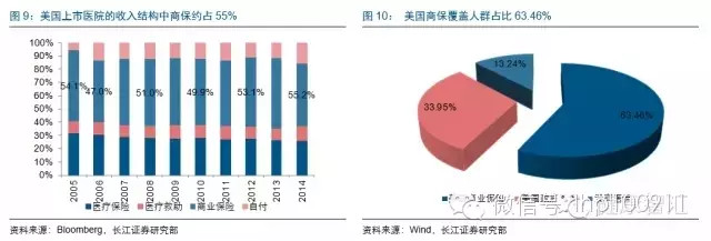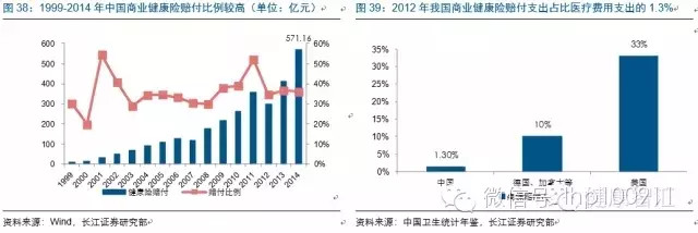 在我國的醫療保險支付格局中,商業保險公司賠付僅占約1.4%,我們參考美國醫療保障覆蓋人群中,商業健康險覆蓋了約63.46%人群、占比醫療費用支出約35%,美國上市醫院來自商業保險的收入約55.2%??梢灶A見,我國商業健康險亟待發力,面臨十倍以上的成長空間。