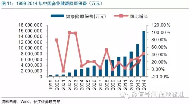 2000年以來,我國商業健康險年均增速約25%,而2014年增速提升至41%,市場規模達1587億元,5年內達到萬億級別已成市場共識??梢钥吹剑诠膭钫叻棚L后,我國商業健康險市場已駛入快車道,是從根本上改善我國醫療支付格局的唯一途徑。