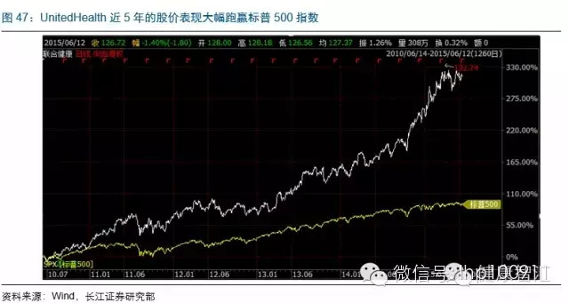 通過分析海虹控股的商業模式,我們認為,海虹的PBM+TPA業務格局對標的應是ESI(快捷藥方)+UnitedHealth(聯合健康)的結合體。聯合健康是一家多元化的健康福利機構,為美國50個州、超過8500萬的人提供健康保險和服務,業務覆蓋范圍超過125個國家,市值突破1120億美元.。