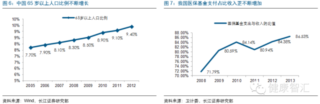 第二、我國人口老齡化加速,醫保基金收支平衡壓力日益凸顯。我國自2001年開始進入老齡化社會,即65歲以上人口比例超過7%,且老齡化速度快于世界平均水平。據聯合國預測,到2020年中國老齡人口將達1.67億人,約占全世界老齡人口6.98億人的24%。而由于老齡人口一方面病癥高發增加醫療剛需,另一方面不再繳納五險一金,意味著我國醫保基金將入不敷出,未來壓力倍增。